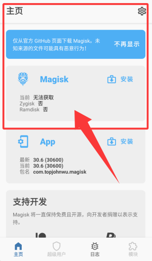 MagiskManager:这个其实只是一个授权的APK,他的作用是在手机刷入面具补丁的时候